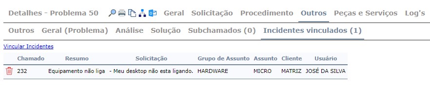 Você pode vincular todos os incidentes relacionados a aquele problema, para assim contabilizar e avisar quais incidentes já foram identificados com aquele problema e qual sua solução provisória ou permanente.